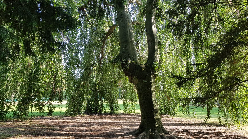 Ich bekam zunehmend eine klare Vorstellung davon, wie ich meinen Begegnungsraum in der Natur erschaffen kann. Und so entstand nach Jahren meiner eigenen Reise der Entdeckung und Erfahrung im Juni 2018, im Rahmen des bundesweiten Aktionstages „Tag des guten Lebens für Alle“, der Tanz der Lebendigkeit. Hierfür wählte ich einen wunderschönen kleinen Park in Kassel – den Aschrottpark – direkt vor meiner damaligen Haustür. Der zauberhafte weidenähnliche Baum dort, welcher oben auf dem Foto zu sehen ist, schenkt uns einen tollen geschützten Raum.