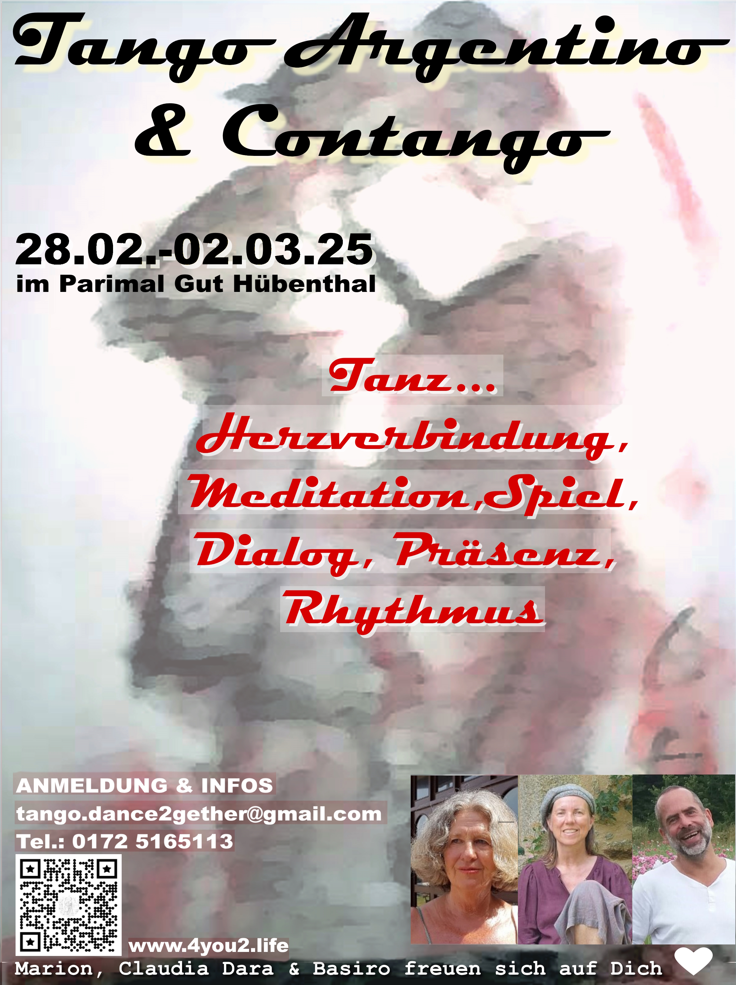 Wenn du kommen magst, melde dich bitte bis Mittwoch davor via E-Mail –tango.dance2gether@gmail.com – bei uns an